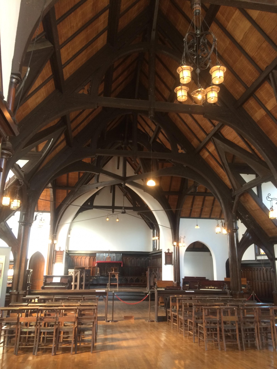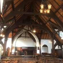 明治村1丁目の小高い丘の上にたつ京都にあったプロテスタント教会です。一階がレンガ造り二階が木造で高い天井と大きなステンドグラスでとっても開放的で暖かい建物です。明治村で大好きな建物の一つです。時間がない人もこちらは見てほしいです、入鹿池も見えて景色もよいです。
