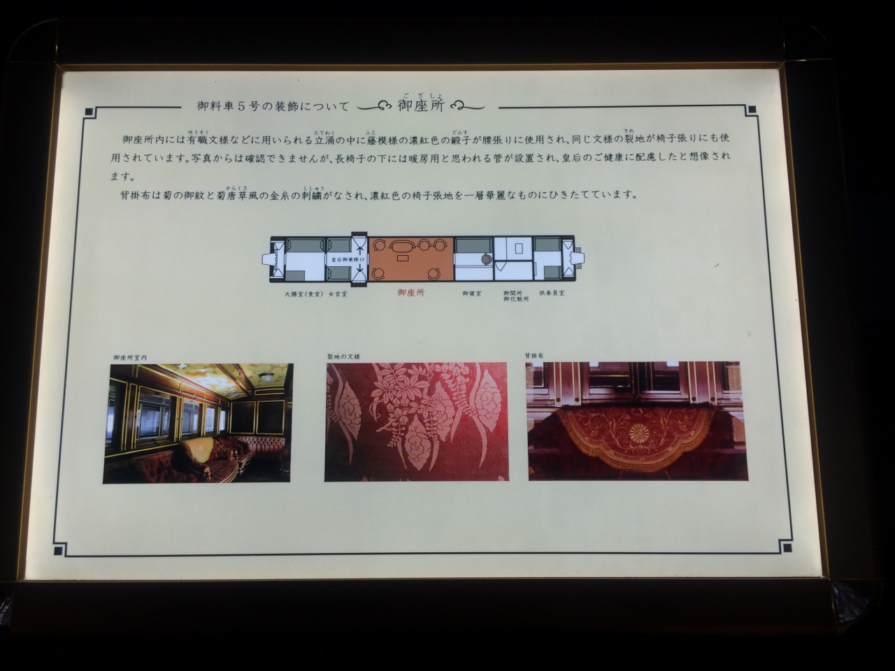 建物は国産の鉄道施設としては最初のころの建物のようです。工場の中には明治天皇がお使いになっていた御料車と皇后さまの御料車の二つが展示されています。内部は公開されていませんが窓越しに見るだけですが、日本の伝統工芸の粋を終結させた素晴らしい装飾が施されています。