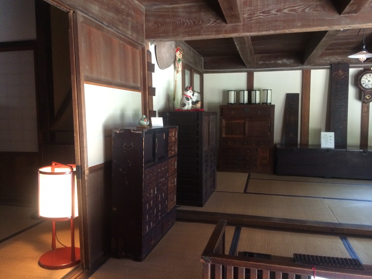 明治村にある重要文化財の一つです。名古屋の堀川にあった商家で木造三階建ての建物は大変珍しいのだそうです。入口辺りのお部屋は自由に見学できますが、その奥はガイドさんと一緒でないと入れませんでした。地元名古屋の建造物次回はガイドさんの解説を聞いて中もじっくり見てみたいです。