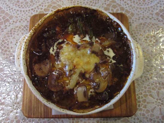 ビーフシチューのSサイズ(1500円)を注文しました。デミグラスソースにとろけるチーズがかかっており、中にはビーフや野菜がいっぱい入っています。どの具も濃厚なソースにからめて食べると美味しいのですが、特にビーフは口の中でほろほろと崩れるほど柔らかく煮込まれており、絶品でした。