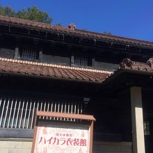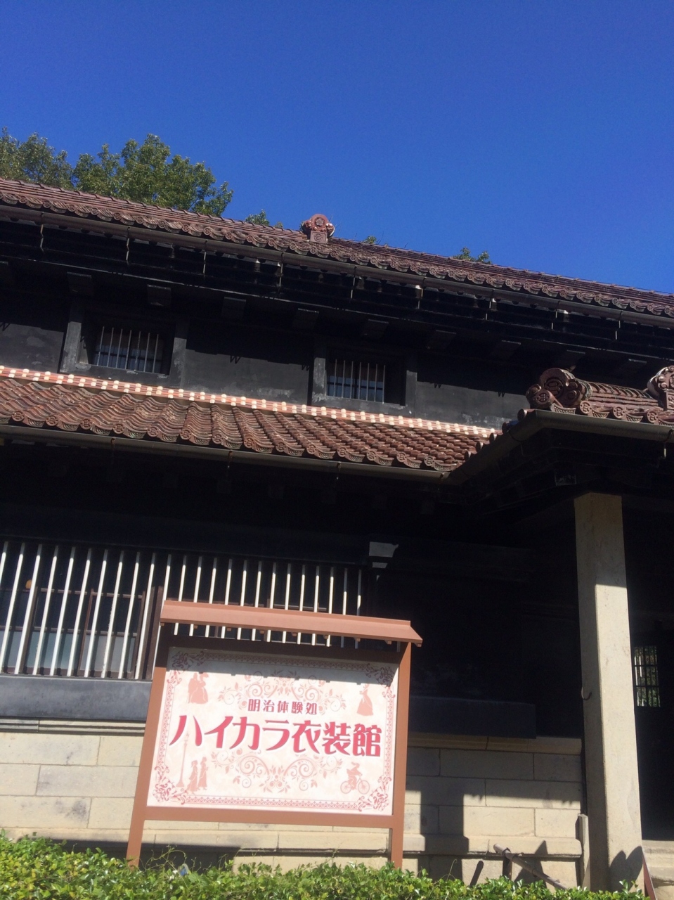 明治村二丁目、レンガ通りの入口あたりにあります。会津にあった銀行ですが、耐火性を生かした昔ながらの土蔵造りに洋風テイストを取り入れた珍しい作りのようです。ここは袴、ドレスなどの衣装を貸出ししてくれる施設です。写真撮影も可能です。