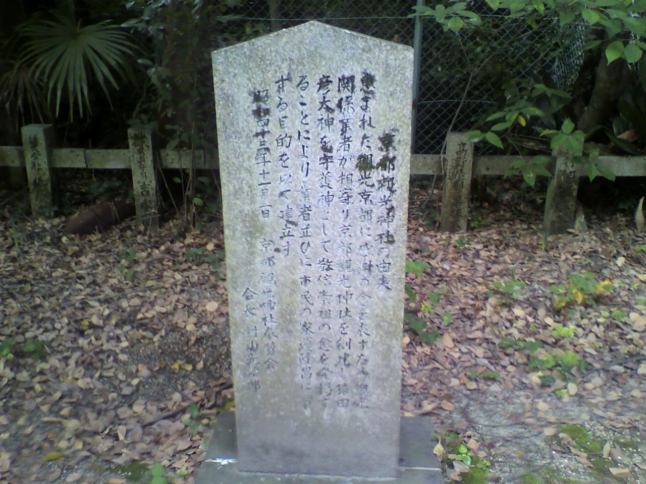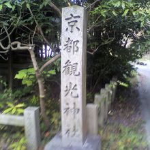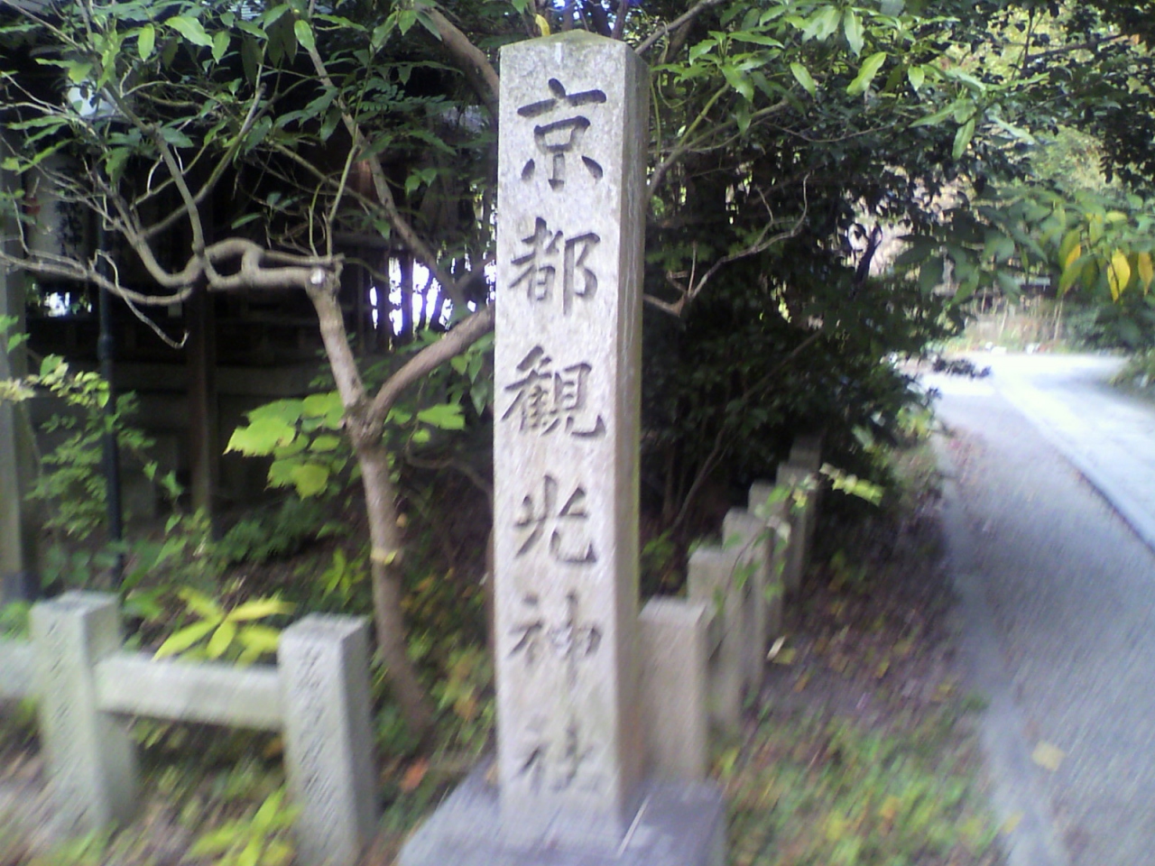 京都御苑内にある宗像神社の境内に、京都観光神社がひっそりとありました。石碑によると、恵まれた観光京都に感謝の念を表すために観光関係業者が相寄り創建したそうで、道案内の神として猿田彦大神を祀っているそうです。