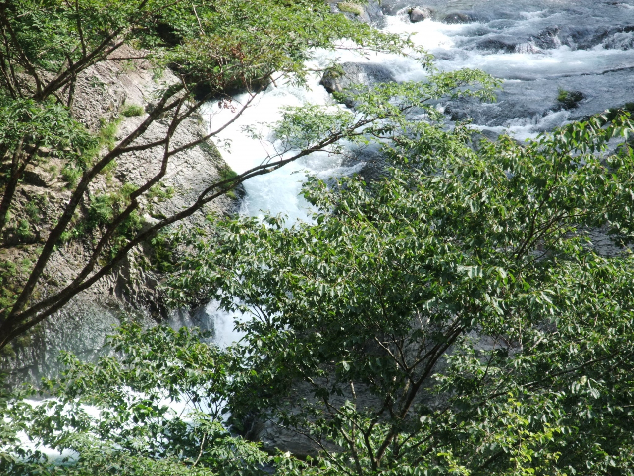白布をさらしているように見えるので、布滝というのだそうです。布滝の段差は、川底に柔らかい岩とかたい岩があったために次第にできたそうです。