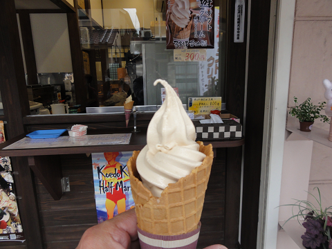 時の鐘近くにある弓削田醤油に併設された軽食コーナーを醤遊王国時の鐘店としてるようです。店内で醤油ソフトの他、こだわりの卵や醤油で食べる卵かけご飯や醤油プリン、みたらし団子など食べられます。卵かけご飯は11時からだったので醤油ソフトを食べました。ソフトと醤油の相性は良くコクがあり美味しかったです。