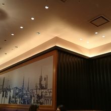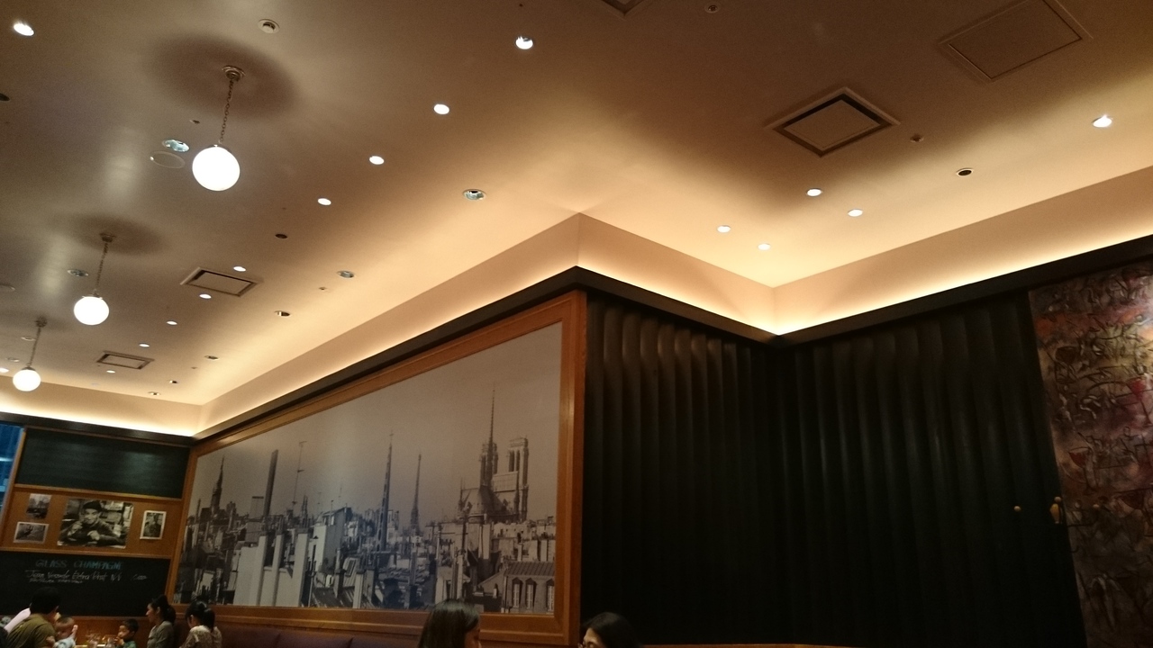 高級ホテルのレストラン風の雰囲気で、壁には大きな風景写真・・・Parisの風景です‼