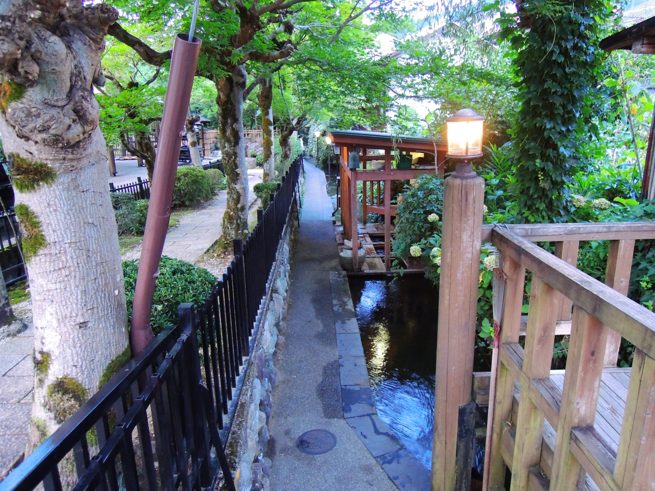 夕方になると外灯の灯がともりいがわの小径はとても雰囲気のいいところになります。