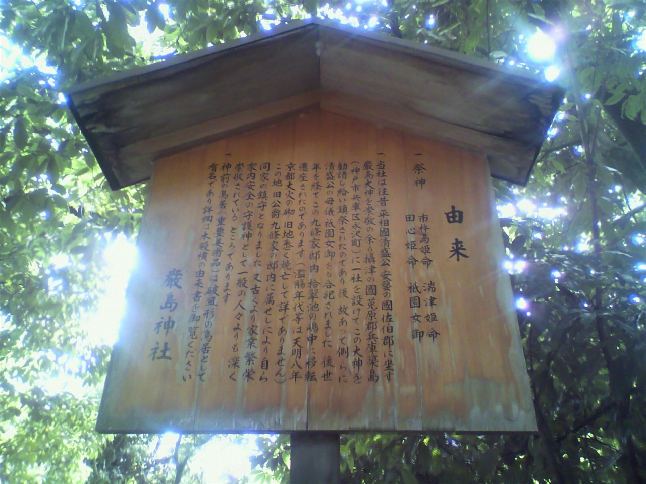 平清盛が摂津国兵庫津の築島(経が島)に社殿を建て安芸の厳島社を勧請し、のちに母の霊を合祀したものが起源ととされているそうです。