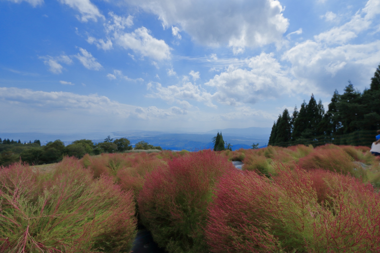 少し早かったようですが、ふあふあもこもこのコキアが可愛色づいており、またススキが黄金色の穂を秋風に靡き、秋を感じられる山上でした。
