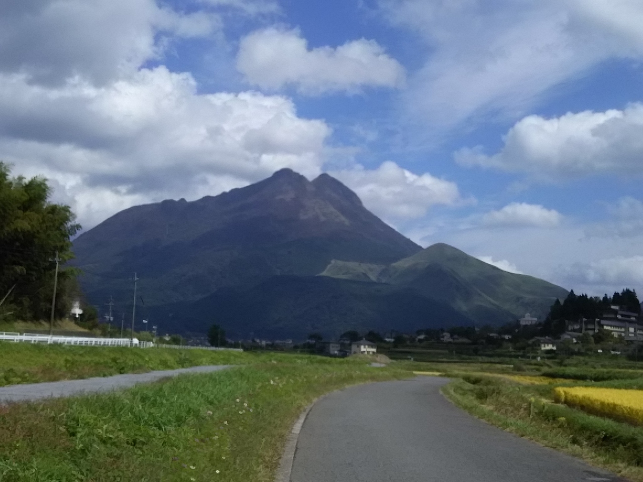 観光地・湯布院の街中を流れる「大分川」沿いで車を停めて、由布岳や川沿いのコスモスを眺めてひと休みしました。