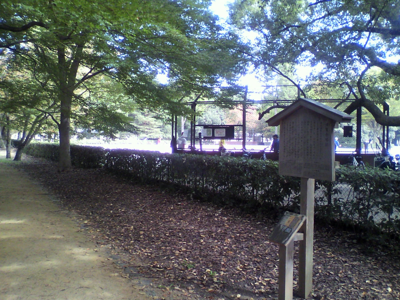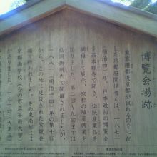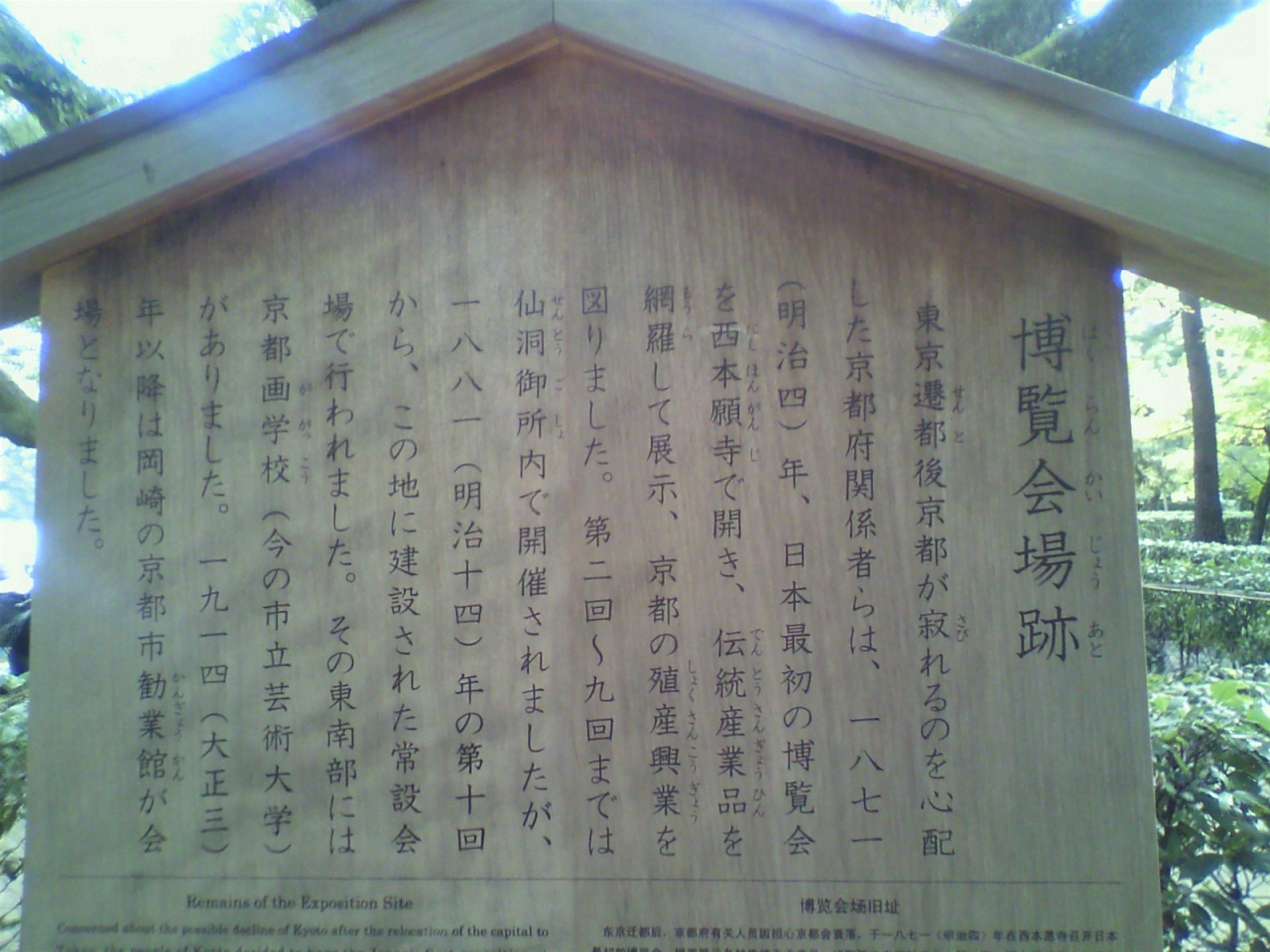 京都御苑内、丸太町通りに面する富小路口から入った正面辺り、富小路広場の片隅に「博覧会場跡」という案内板がたっています。