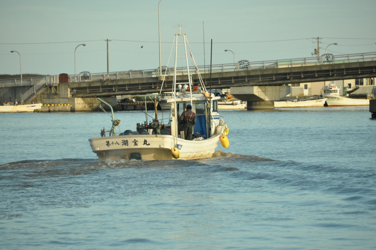サロマ湖そのものは昔から何回か見ているが、今回の道東プチ旅行で展望台から見てみたかった。訪問当日は快晴に恵まれたが、その2~3日前に北海道に爆弾低気圧が来て、道東方面は暴風雨で土砂崩れもあったようで、サロマ湖展望台に行く道は通行止めになっていた。そのためサロマ湖は平地から眺めるしかなかった。道東まで来る機会は滅多にないので残念だった。しかし翌朝、宿泊地近くの栄浦港周辺を散歩していると、漁船がたくさん停泊しており、そのうち1槽の出港場面に出会うことができた。