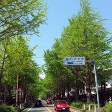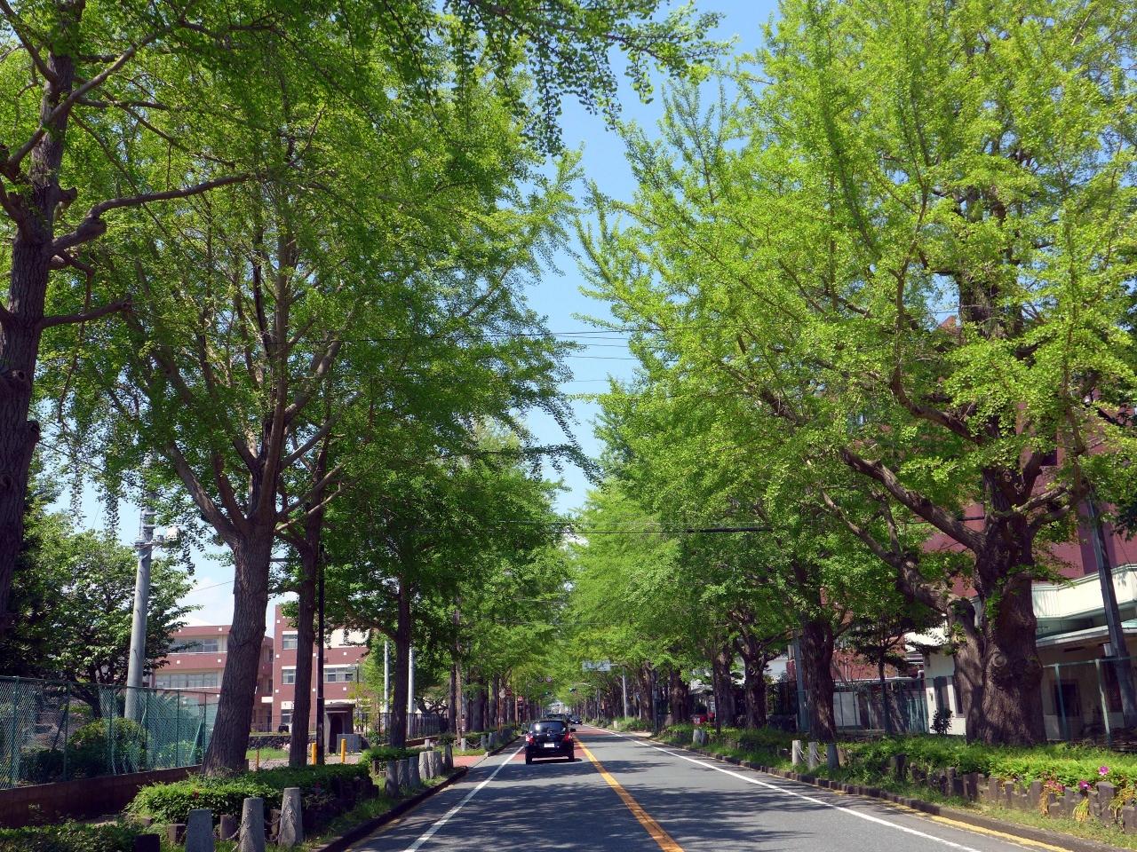日本大学三島校(中学・高校・大学)をはじめ、静岡県立三島北高校、三島市立北小・中学校が並ぶ学校前の静岡県道21号三島裾野線沿いの600mに渡って、約9m間隔で117本のイチョウが植えられています。