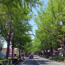 冬には葉を全て落としてしまう銀杏ですが、春にはまた葉を出し、新緑が緑のトンネルを作っています。