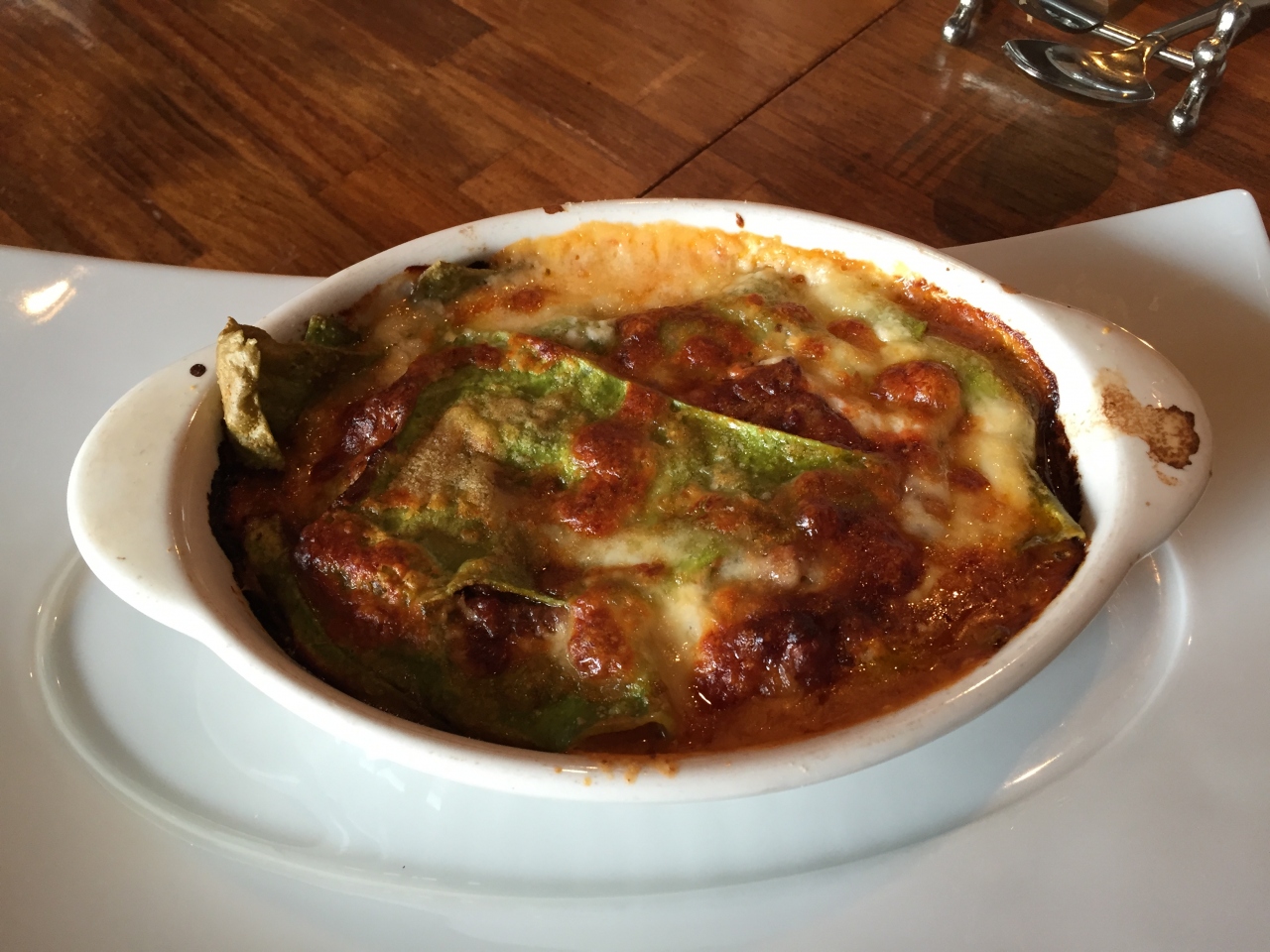 前菜は生ハムのサラダ、メインはラザニアを選択。