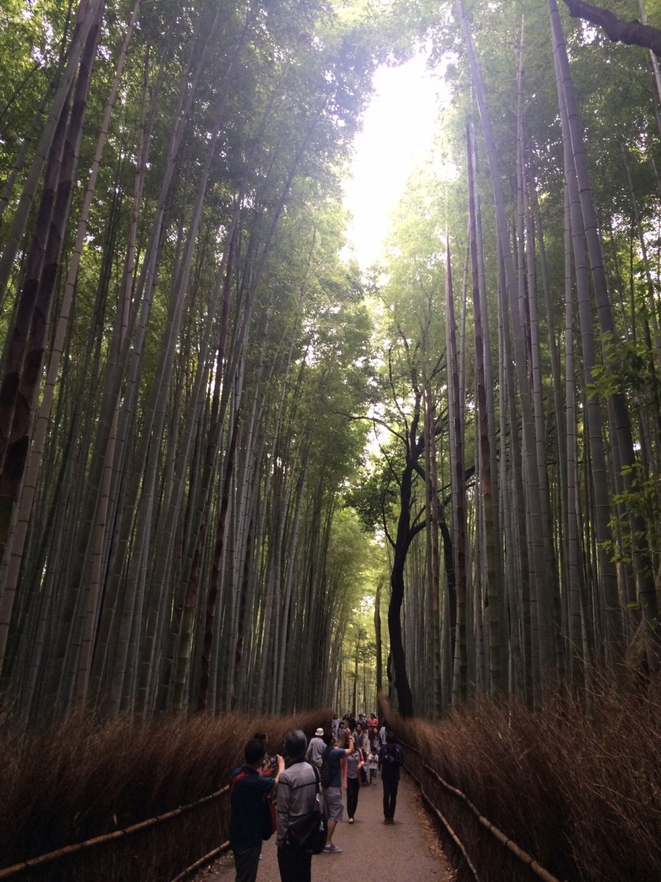 写真で見るように、誰もいない竹林をゆっくり歩く、、、のは難しいくらい人が多いです。写真とるには奥までいきましょう。分かれ道では、人がいない写真を取りやすいです。ゴールデンウィークの次の週でしたが、かなりひんやりしてました。