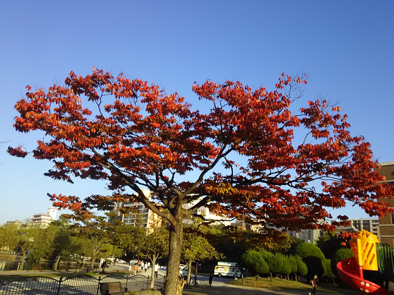 10月に入って、全国各地からの紅葉情報も発信されていますが、福岡市内のオアシス的なこの公園でも紅葉してきました。