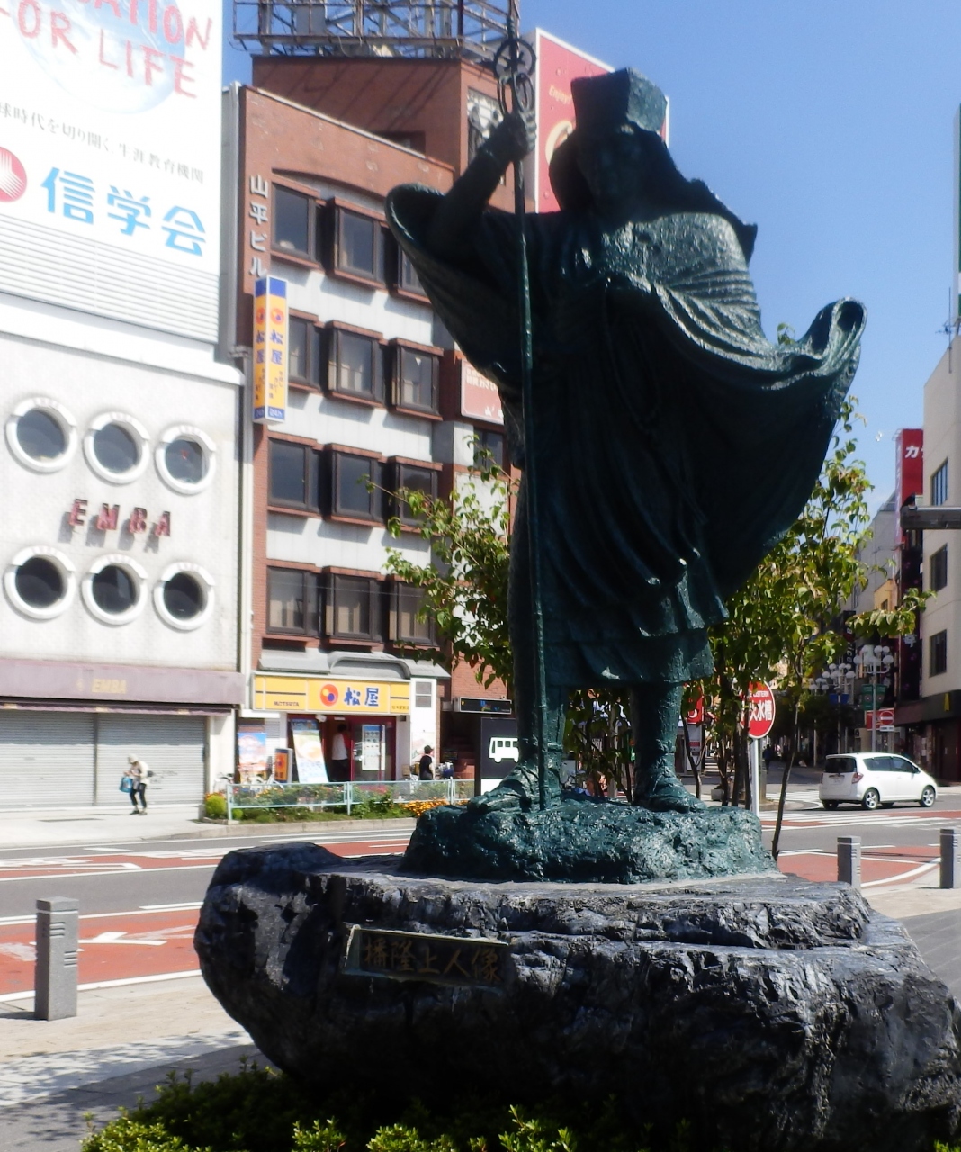 JR松本駅前のお城口側にある広場に、播隆上人像が建てられていた、小生初めて聞く名前の上人、現地に立てられていた説明板によると、日本で初めて槍ヶ岳に登頂(開山)した人だそうだ、松本は日本アルプスの玄関駅なのでふさわしい場所に建てられていることになります