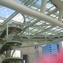 車のCMで目にしてから気になっていた施設です。昼間に訪れたのですが、実際目の当たりにすると陽の光が反射して綺麗な建物でした。週末だったからか、イベントも行われており大変賑やかでした。周囲のスペースには芝がはられ、ゆっくり一休み出来ました。