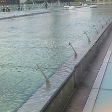 オアシス21を訪れて初めて、屋上がこのような水の空間になっていることを知りました。夜のライトアップも素敵だそうですが、昼間の陽の明かりが反射する水面も素敵で癒されました。エレベーターでも階段でも上がれますが、階段での上りは若干大変でした。