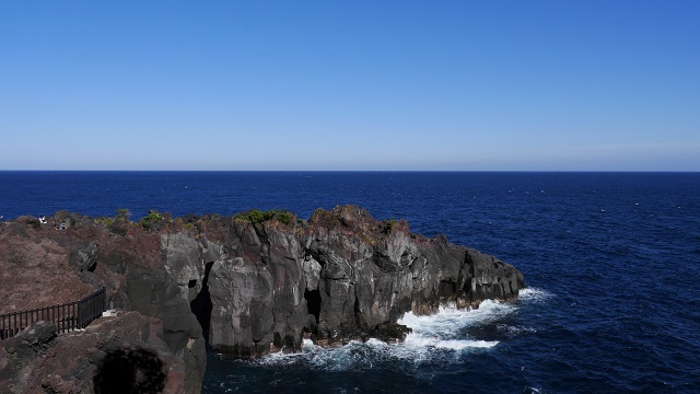 伊東駅から伊豆高原駅の間を観光したときに立ち寄った海岸沿いのスポット。荒々しい岩場が広がる風景が絶景でみごたえがある。遊歩道も設けられているので時間に応じて散策を楽しみたい。伊豆海洋公園というところではサーフィンを楽しめる場所もあるようで、結構な賑わいだった。
