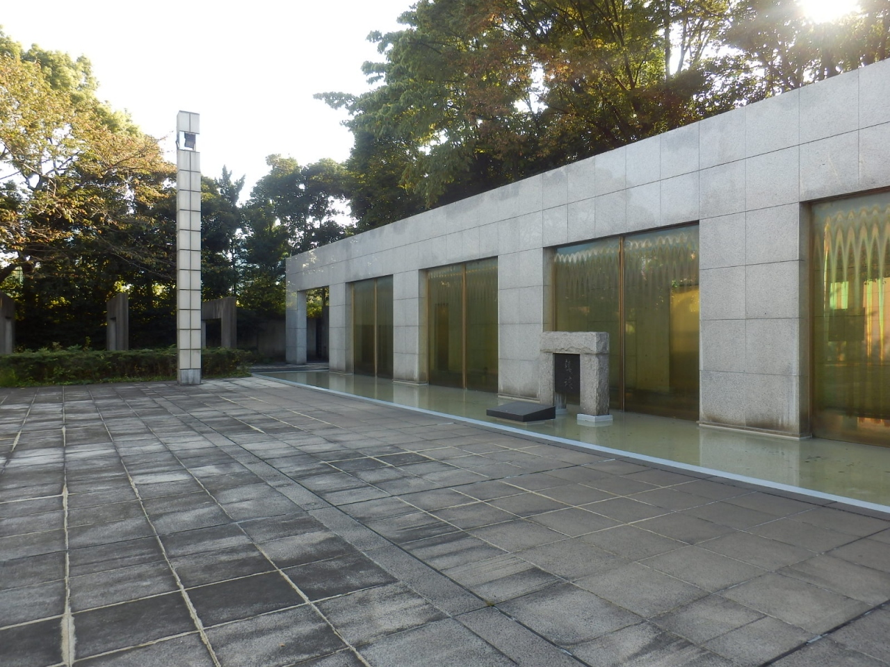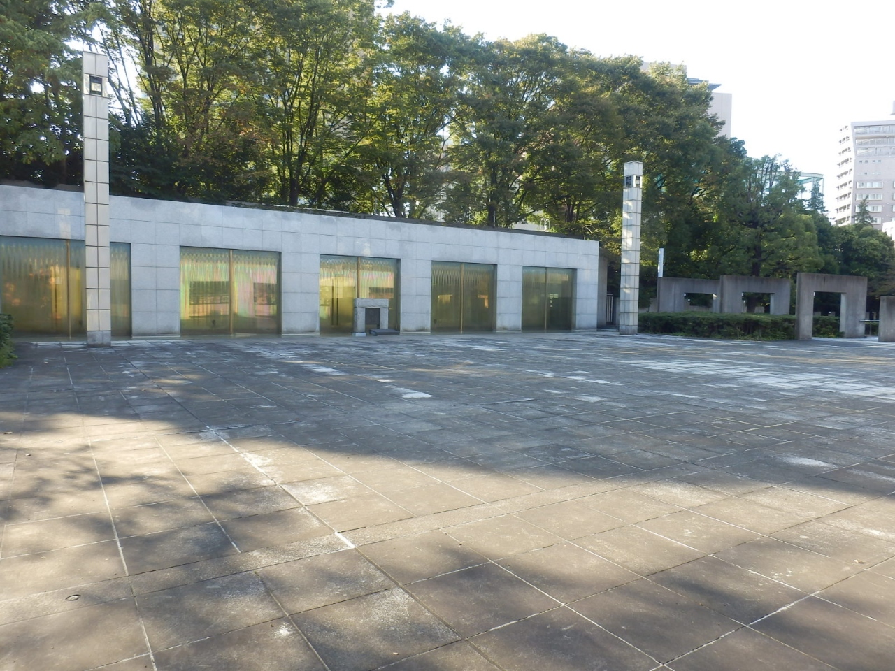後楽園駅の北側に広がる礫川公園は三段になっていますが、その 上段からさらに上がった場所にこちらの東京都戦没者霊苑があります。礫川公園側からも入れますが、正門は春日通り沿いにありました。門の正面には鯉が泳ぐ小さな池があり、左手には遺品展示室、さらに奥へ進むと広場がありました。広場は鎮魂の碑と碑文のみが置かれている広い空間でした。