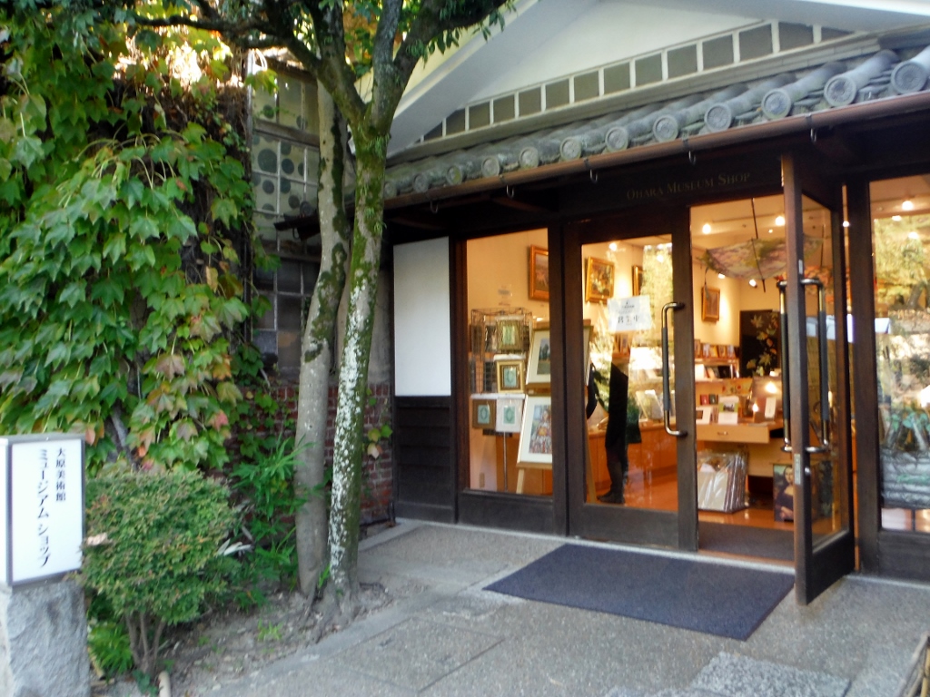 大原美術館のミュージアムショップ。大原美術館の隣にあります。大原美術館に入館しなくても購入できます。展示品の絵葉書はもちろんの事、お洒落な傘や携帯によさそうな鏡など自分用、お土産用によさそうな物が沢山揃います。大原美術館オリジナル商品も色々でています。オリジナル紅茶まであります。本の形をしたオリジナルの缶入りのクッキーはお土産にいいと思います。
