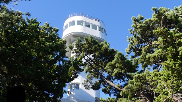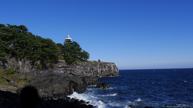 城ヶ崎海岸門脇吊り橋の近くにそびえる灯台。観光灯台のようで中に入り上まで無料で行けるので上がってみた。城ケ崎海岸の景色もすばらしいが反対側には大室山が見られてこちら側の景色もよいと感じた。連休中はガイドの方も常駐しているようでよかった。