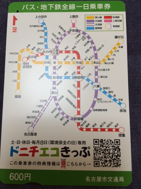 週末に名古屋市営地下鉄のドニチエコきっぷを利用しました。
