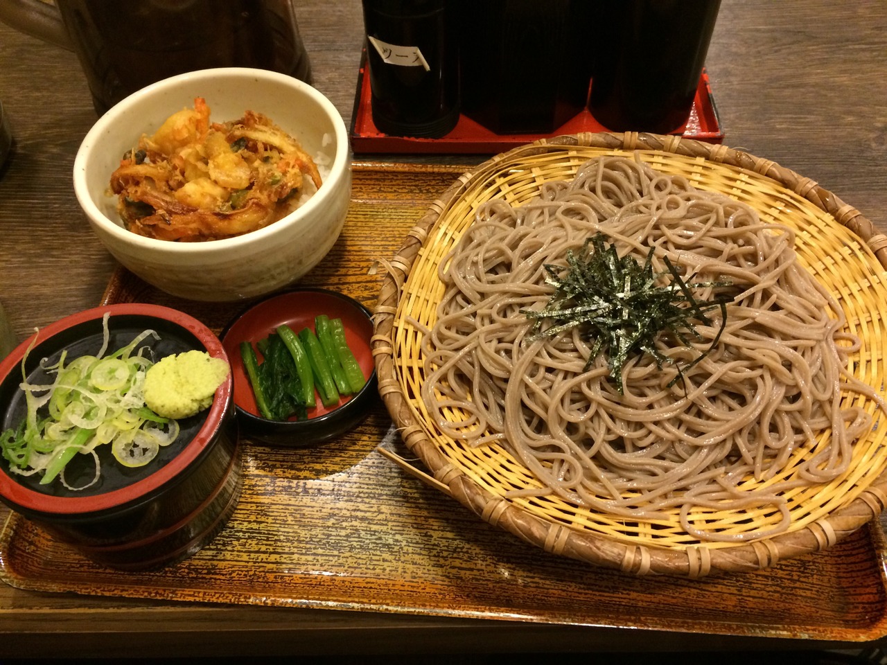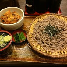 ざるそばとかき揚げ天丼のセットを注文しました。これで695円(税抜)はリーズナブルだと思います。