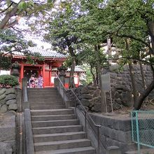 浅草寺本堂の東南側に有る小高い丘(弁天山)の上に建っています。ここに祀る弁天様は白髪の為「老女弁財天」と呼ばれ、神奈川に有る「江の島」と千葉県の「布施」とともに関東三弁天の一つです。巳の日にはお堂の扉を開け法楽が営まれます。