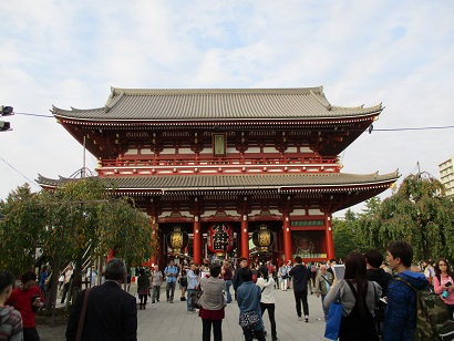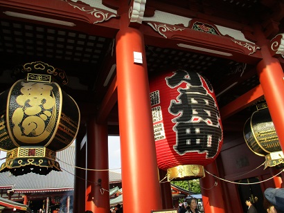 浅草で有名な山門と言えば「雷門」ですが、規模や見応えだけならこの宝蔵門の方がはるかに見事です。宝蔵門は雷門と本堂の間に有る門で「小舟町」と書かれた提灯が吊るされています。現在の門は旧仁王門の再建で1964年に大谷米太郎氏が寄進した物です。