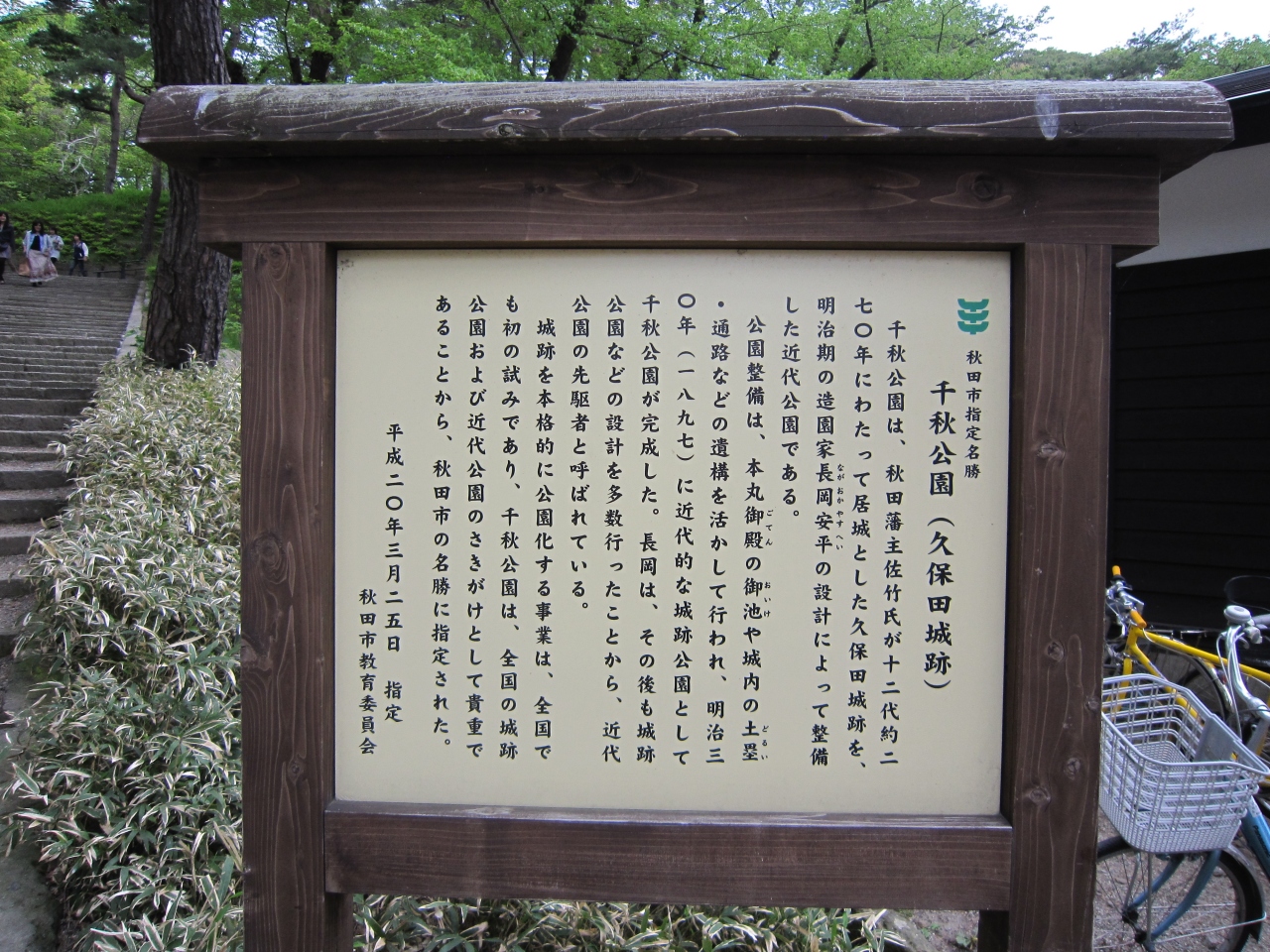 また、園内には県民会館や市立図書館、そして久保田藩主の佐竹氏の資料館が併設されていました。また、広場には子供連れの家族が多数遊んでいました。