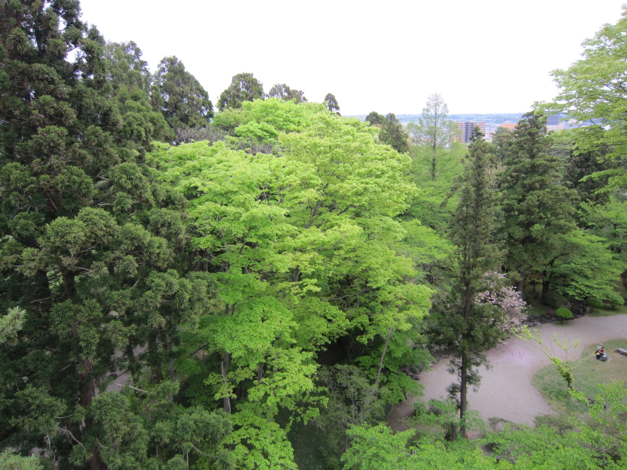 千秋公園は、久保田藩佐竹氏の居城跡で、二の丸址が広場に、本丸址が山林と神社になっています。季節によって桜やつつじ等、咲き誇るようで、日本さくら100選にも選ばれています。市内中心部に、こんな森林があるなんて、凄いですね。