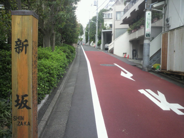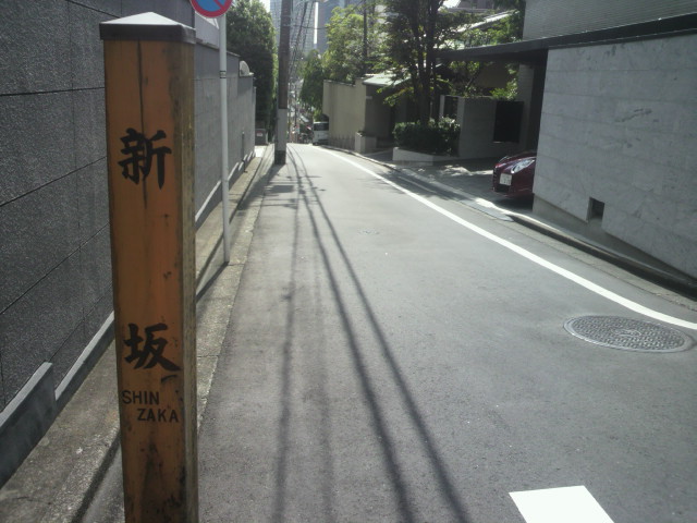 赤坂の新坂は、青山通りのカナダ大使館から赤坂通りへの途中、中間付近にあります。