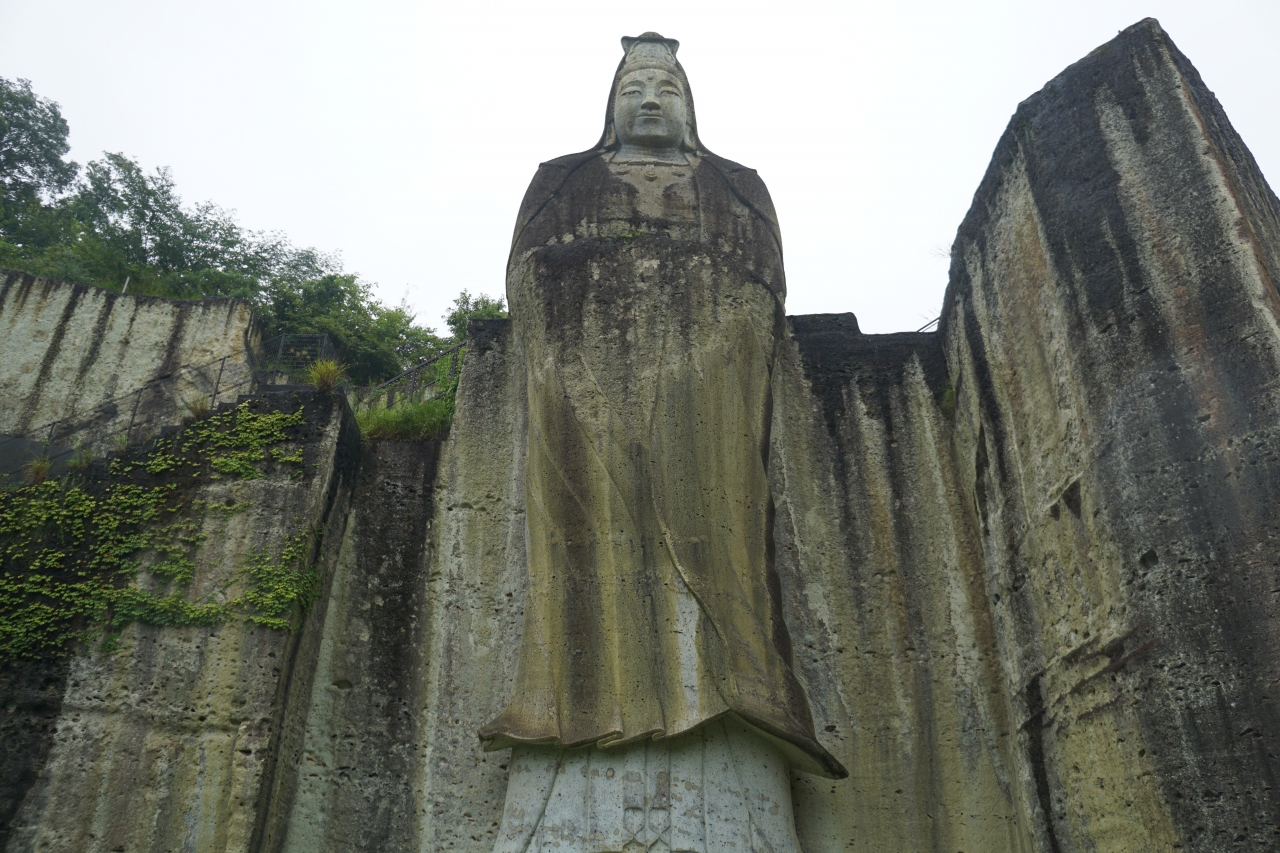 大谷平和観音は、大谷観音とは別物です。大谷寺大谷観音から歩いてすぐの場所にある公園の中にそびえるように立つ高さ26.93mの石造りの立像。昭和23~29年にかけて、太平洋戦争の戦死者を追悼するために造られました。