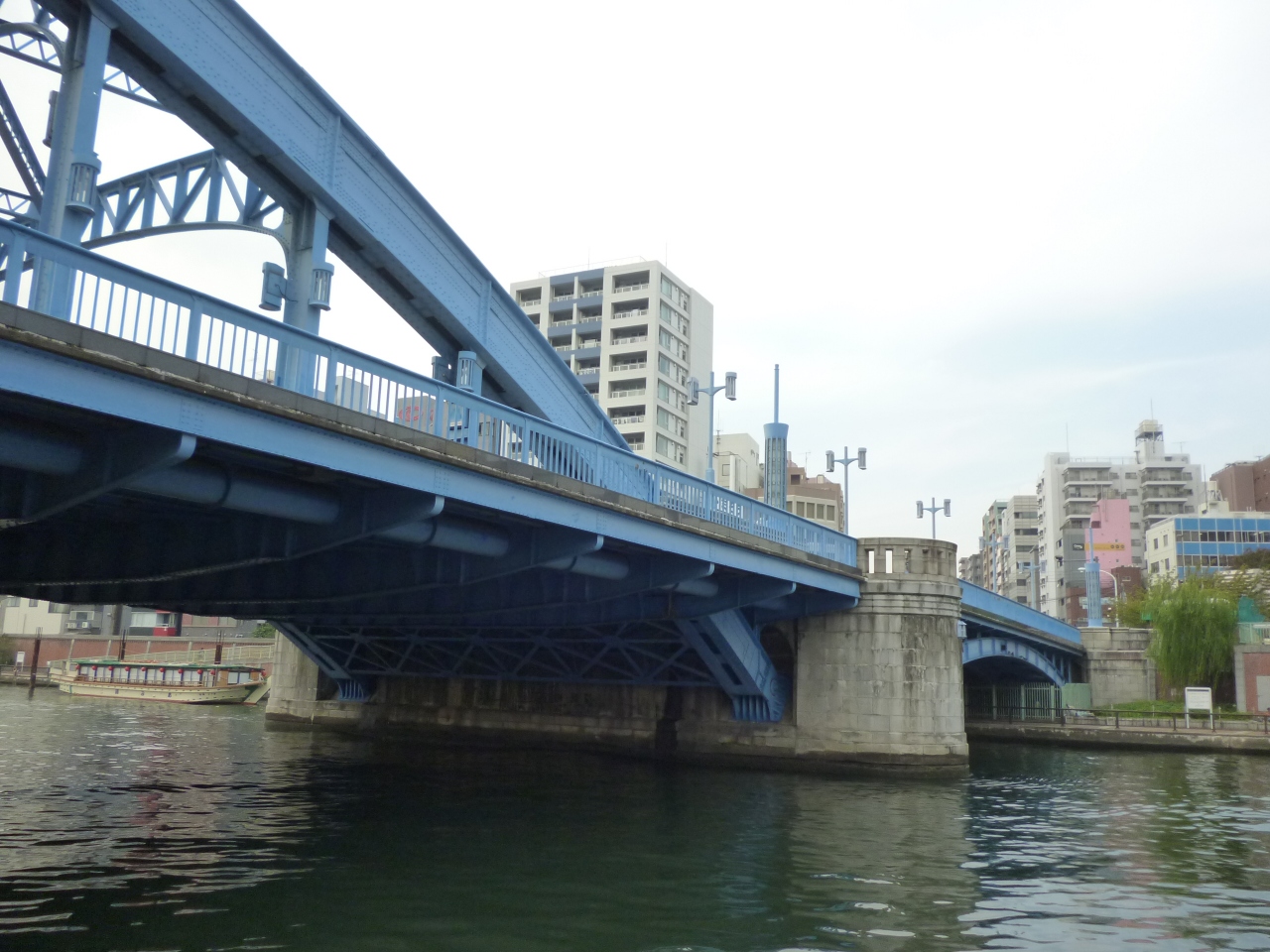 隅田川下りをしました。駒形橋は、2番目にくぐる橋下です。ブルーのアーチ橋です。下から見上げると、ブルーがきれいでした。近くに駒形堂があるので、この名前がついたそうです。橋がなかったころは、渡し船が活躍していたそうです。