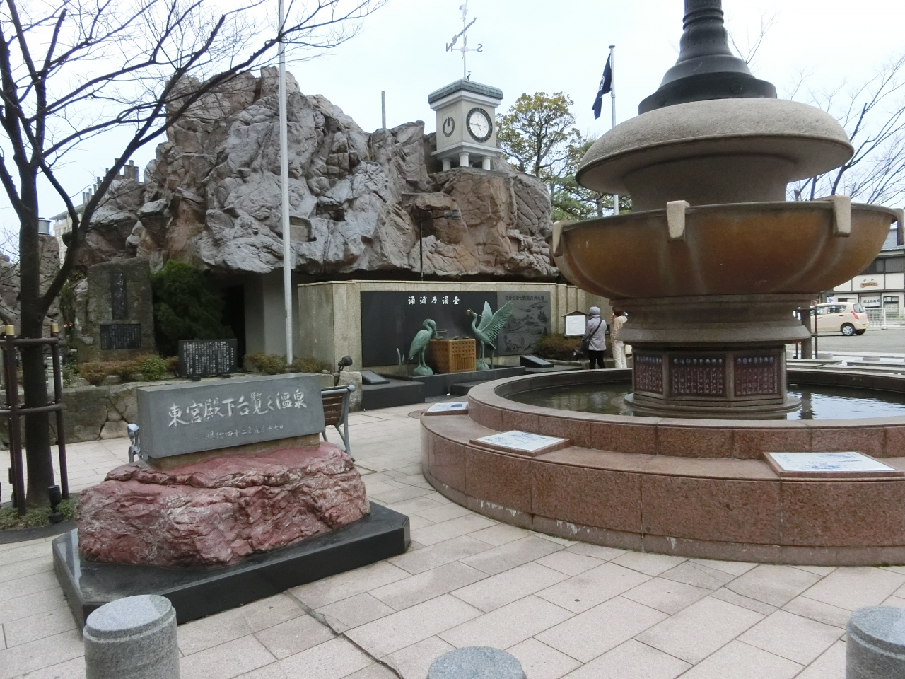 渡月橋には大黒天像があり、親子がハンコを押していました。