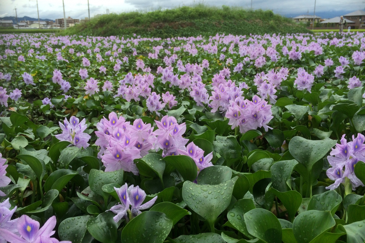 ふとしたことから、この史跡の敷地一面にホテイアオイが咲きている写真に出会いました。