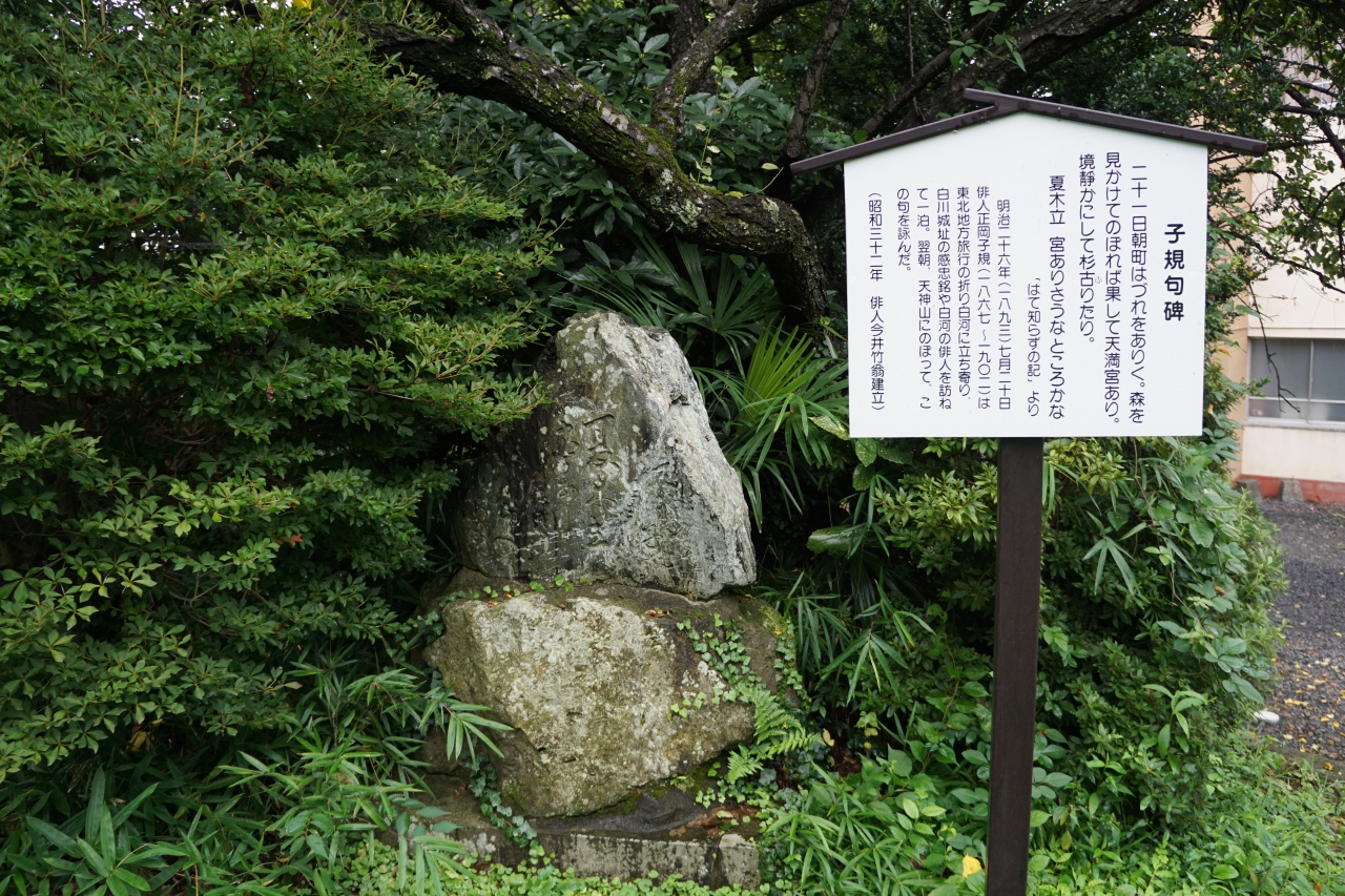 天神神社は、古い絵馬とか古いお宝がそれなりにあったらしいのですが、火事か何かにあってなくなってしまったのだとか。現在は復旧はしているのですが、小高い山の上の境内でそんな神社だったという雰囲気を感じるくらいしかないようです。子規の句碑がポツンとありました。