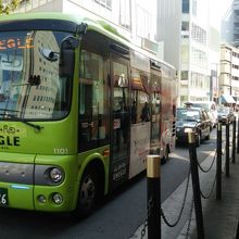 西梅田茶屋町グランフロント大阪JR大阪などの梅田地域をぐるぐるまわるバスです。みどり色のカラーがかわいいです。バス停も緑です。100円で茶屋町から西梅田まではお得だと思います。一方方向なのが少し残念ですね。