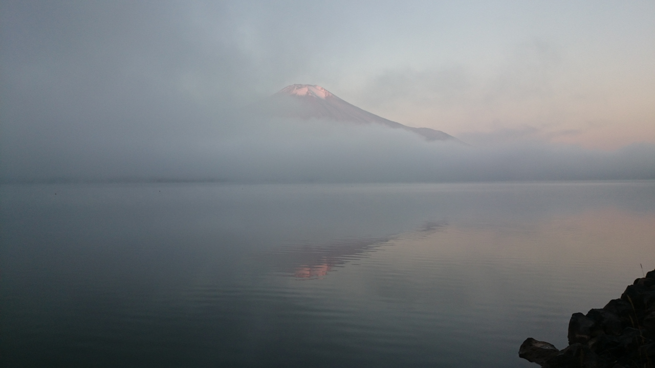 完全な姿ではないものの、逆さ富士を見ることができて満足です。