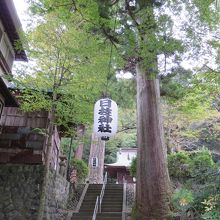 本殿の左側を見ると立派な夫婦杉がそびえていました。