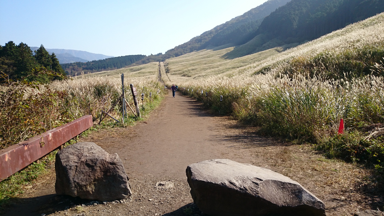 小高い山の斜面にそって中腹までススキがびっしり生えているので、道沿いだけでなく結構遠くのススキも見えます。