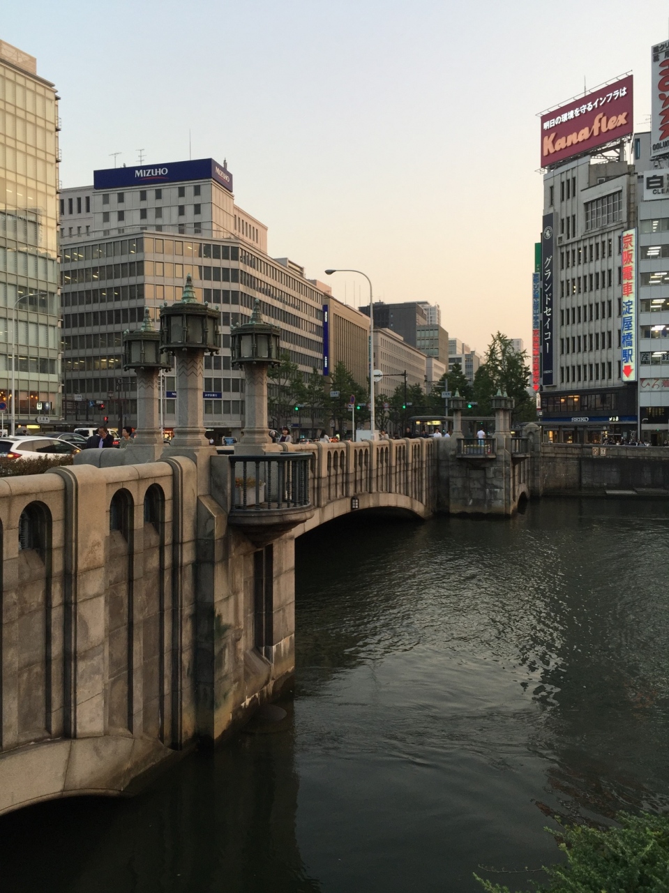 大阪市役所と日本銀行大阪支店の立派な建物に隣接しています。