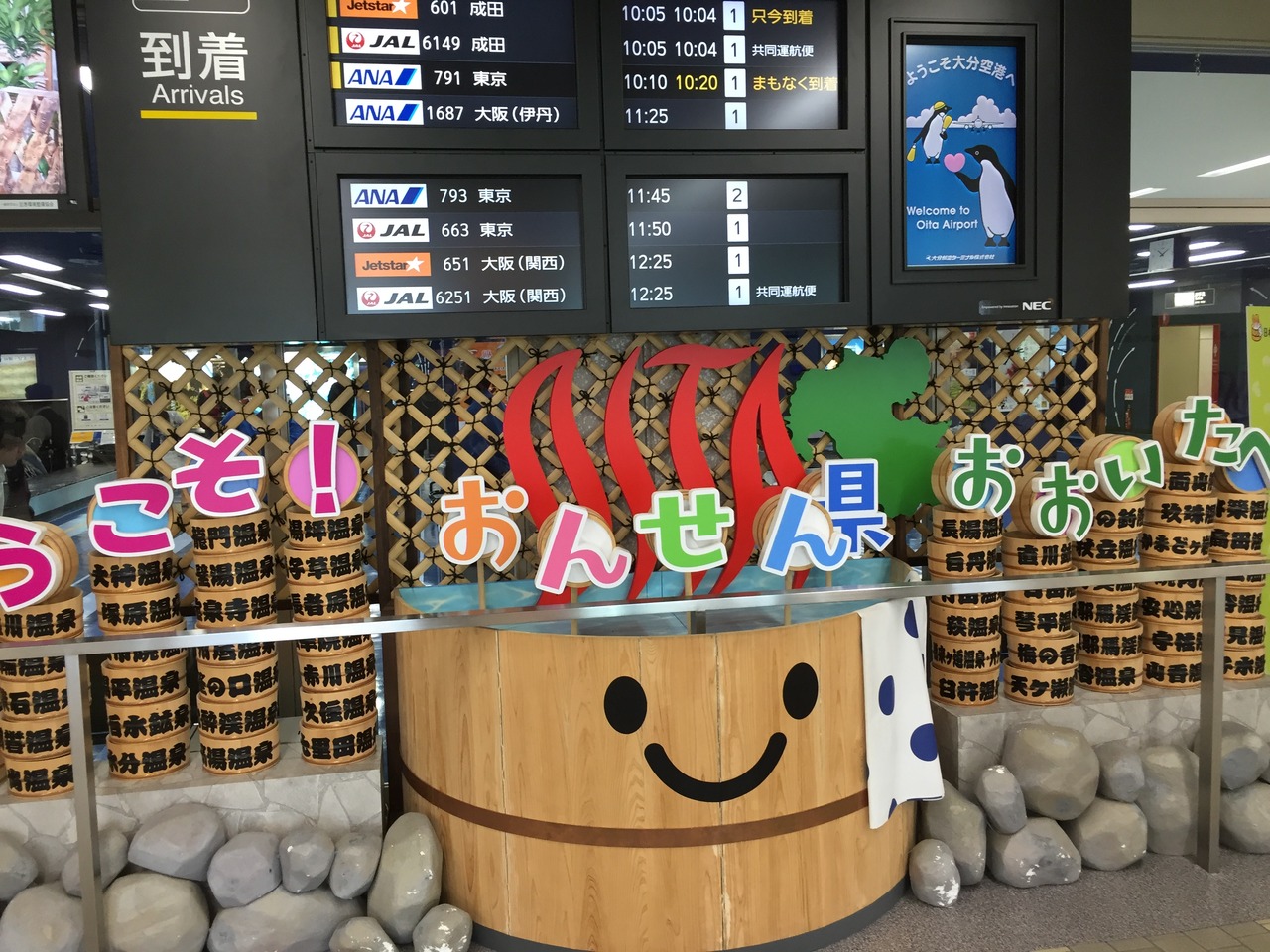 空港内の至る所に『ようこそ おんせん県 おおいた』のPRがあります。