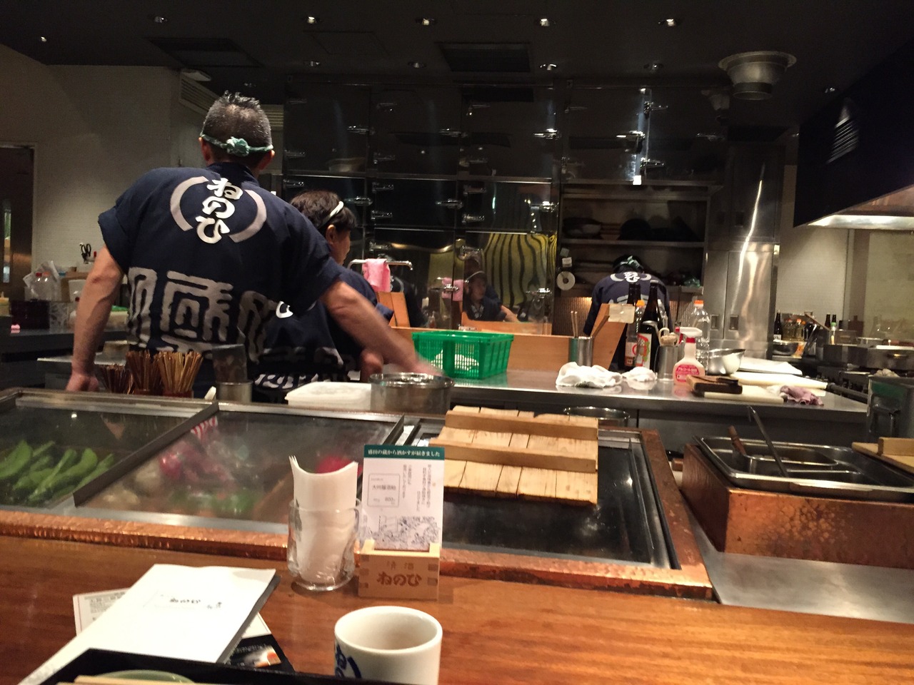 カウンター席に座りますと、目の前の厨房で働く姿・食材選び・包丁さばきなどが見れます。