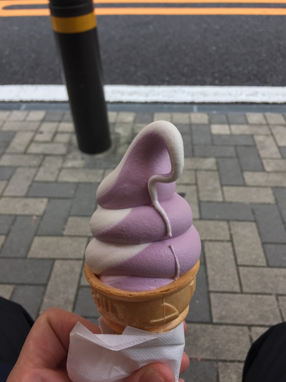 日替わりのフレーバーとバニラのソフトクリームのミックスがオススメです。