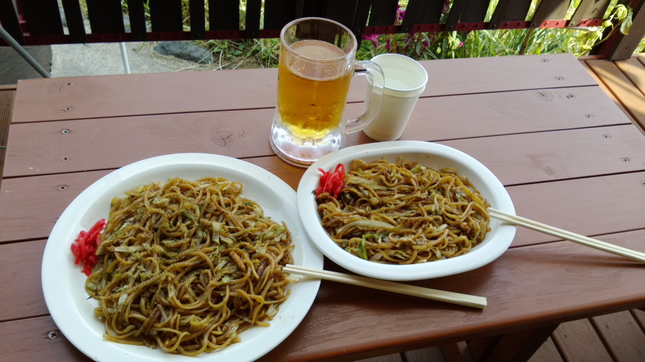 浅間大社の駐車場内(?)に、富士宮やきそばののぼりを見つけ行ってみました。テラス席が開いていたので、そちらで食べました。シンプルだけど美味しくて、また食べたいと思えるお味でした。店内は、ぐるっとカウンターでした。