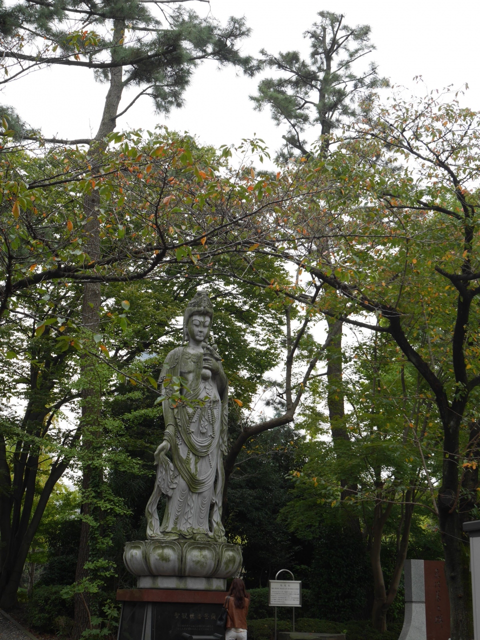 増上寺の三解脱門をくぐると、左手の木立の中に、この菩薩像が建てられています。1982年に起きた、ホテルニュージャパンの火災で犠牲になられた方の供養のために建てられたそうです。日本に観光や仕事で来られた外国人の方も巻き込まれた火災だったと思います。