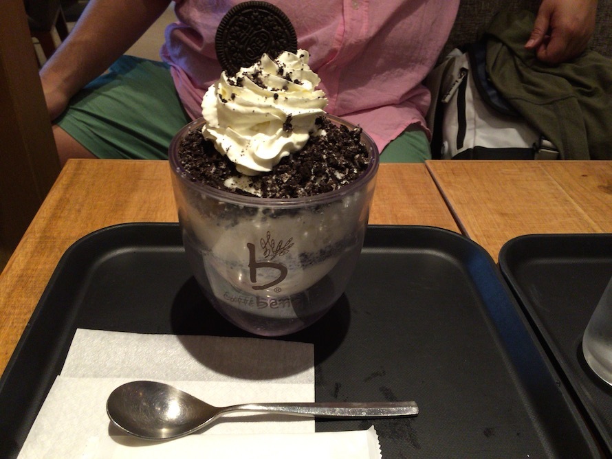 かき氷に800円?高くない?と思わず言ってしまったのですが、連れて行かれて納得。雰囲気もいいし、座席も広いし、しかも、このボリューム!しかも、味もとってもよかったわ。彼はオレオ味のものにしていましたが、これまた美味しい。しかも、座席配置によっては電源まであるので便利です。日曜は特に空いています。